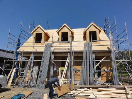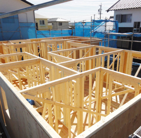 一般的な木造住宅をさらに大別すると在来工法(木造軸組工法)とツーバイフォー工法(枠組壁工法)に分類できます。在来工法とは柱と梁を専用金具で連結、筋交いやホールドダウン金物で強度を高めた構造で、軸組で強度を保つため壁の位置に制約されることが少なく、広い開口部(窓)や続きの間を設けることができます。比較的自由度の高い建築方法で築後の増改築も容易に行なえるメリットがありますが、平成7年に発生した阪神大震災では耐震基準を満たしていない古くからの在来工法の建物崩壊が問題になり、現在では徹底した耐震化が図られています。